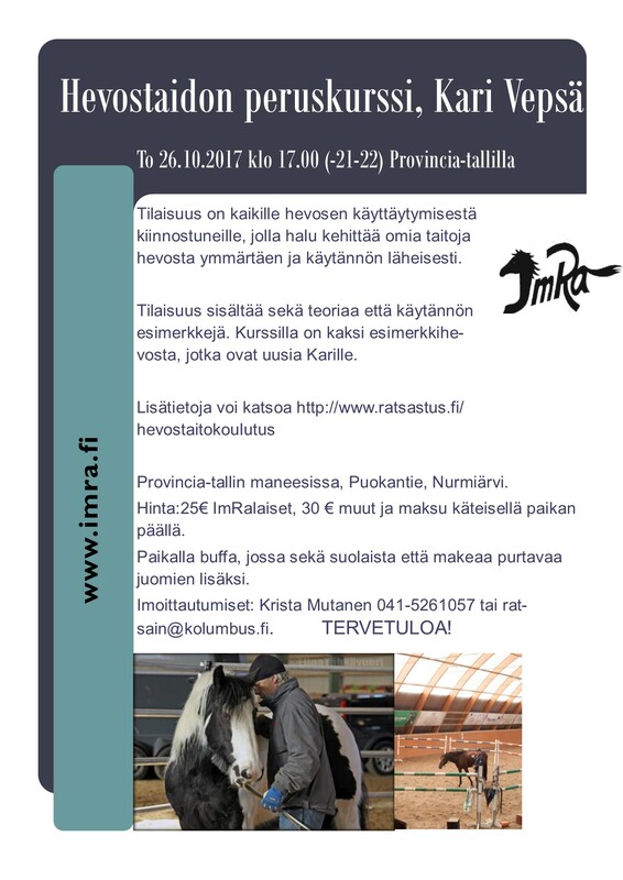 Hevostaidonkurssi 26.10.2017 Kari Vepsän johdolla